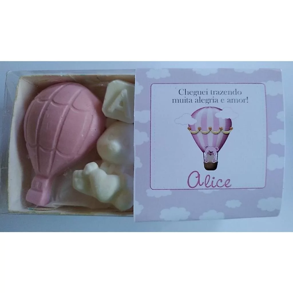 Lembrancinha sabonete de balão na caixinha personalizada